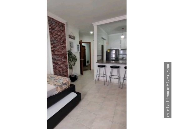 Se vende acojedor apartaestudio amoblado tipo loft de 32m2 en el rodadero, segunda linea de mar, segundo piso con 1 alcoba, 1 baño, cocina integral, balcón, parqueadero, con permiso para renta turística, cerca a playas, supermercados, restautantes, el edificio cuenta con celaduria las 24 horas, ascensor, precio negociable.
